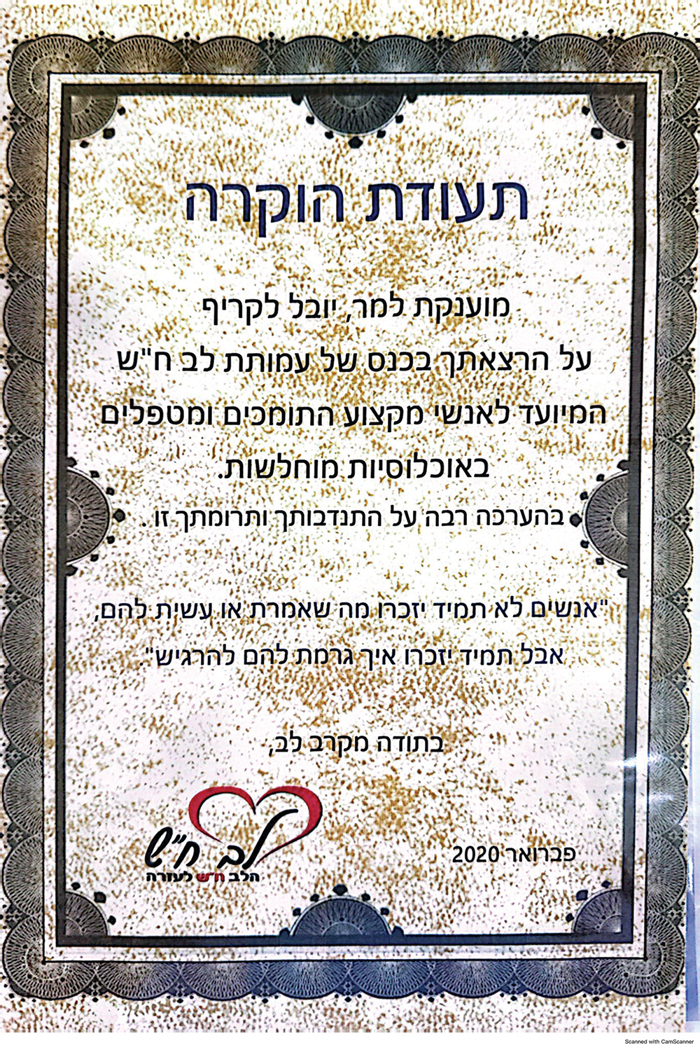 "לכבוד מר יובל לקריף, בשם מנהל המפעל איתן לוי ובשם כלל המנהלים וצוות עובדי מפעל צורף. אנו מודים מעומק הלב על ההרצאה המרגשת ומעוררת השראה שהעברת בפנינו היום בנושא נהיגה נכונה, הסיפור האישי שחלקת איתנו על אובדן בנך היקר קצין צעיר ומבטיח סרן ניר לקריף ז"ל, הסיפור נגע בלב כולנו. דבריך הצליחו להעביר מסר עמוק ומשמעותי על החשיבות בשמירה על חיינו ועל חיי אנשים אחרים בכביש. תודה לך על הנתינה, על היכולת לחולל שינוי ועל המילים שהשאירו חותם, מעריכים מאוד את פועלך ונשמח להמשיך ללמוד ממך גם בעתיד. "